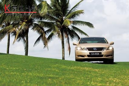 雷克萨斯GS450h 在三亚湛蓝的天空下,雷克萨斯GS450h车头的徽标散发出幽蓝的光芒,这款采用混合动力驱动技术的行政级豪华轿车,正在开拓属于自己的一片蓝海。 停在一片绿草之上的雷克萨斯GS450h,与周围的环境相得益彰,作为雷克萨斯旗下的又一款混合动力车型,GS450h同样采用了带有淡蓝色光芒的前后Logo及熏蓝处理的前大灯,揭示出其属于雷克萨斯油电混合动力家族的环保身份。分体式前大灯、保险杠及后视镜两侧的线条变化,让其原本就极富运动气质的外观更具张力和动感。而特别为GS450h配备的18寸合金轮毂,则更加鲜明地呈现出GS家族一贯的运动本质。 1997年,雷克萨斯以高性能轿车(High Performance Sedan)的概念为基础,推出了全新的GS系列,由意大利著名设计师乔治亚罗主笔的第一代GS奠定了整个车系动感运动的基调,而本次引入国内的GS450h,不仅是运用了雷克萨斯经典的L-finesse设计理念设计的第三代GS车型,同时也是雷克萨斯引入中国的第三款混合动力车型。