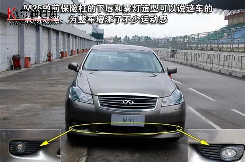 与英菲尼迪旗下部分车型,一眼就让人感到惊艳不用,M35则称得上是一辆标准的第二眼美车。前保险杠下凸起的小唇边,和极富个性的雾灯组造型。在保留整车稳重、大气的同时,又在细节之处展现出其运动的一面。